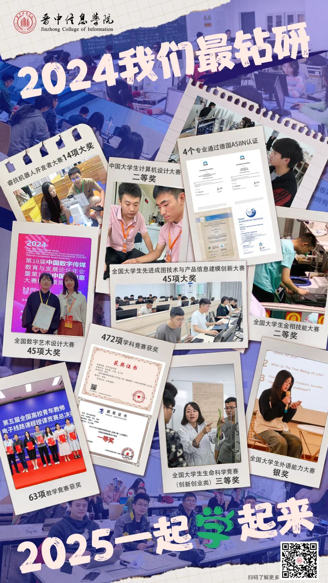 2024年,晋中信息学院立足应用型高校建设,紧密围绕“信息产业商学院”的办学定位和“服务于信息产业的高素质应用型人才”的培养目标,坚持立德树人根本任务,坚持“一切以学生发展为中心”的教育理念,坚持内涵建设与质量提升,大力实施“十大专业教育提升行动”,以专业认证为引领,以一流课程为抓手,推动专业内涵建设;以大规模课堂教学改革创新为主线,以教学成果培育为导向,继续推行教育教学改革;以质量管理为目标,逐步构建校内自我评估机制;以校企实训项目、校企应用型课程和学科竞赛为切入点,加快双师型教师和产业学院建设,深化产教融合,增强学生实践创新能力,逐步提高应用型人才培养质量。