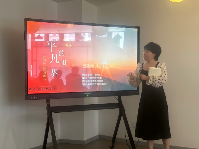 活动伊始,刘姗老师以“为什么推荐阅读《平凡的世界》”为题作开场发言。她指出,这部荣获茅盾文学奖的作品,以1975-1985年间陕北农村的变迁为背景,通过孙少安、孙少平等人的奋斗故事,展现了普通人在时代洪流中的坚韧与尊严。紧接着,刘老师讲述了这本书里面的主要人物关系以及关键故事情节。孙少安、孙少平兄弟的坚韧不拔,贺秀莲、田润叶的、田晓霞三位女性的的勤劳善良、淳朴厚道,引发了各位同学的一致称赞与敬仰。当说到这些人物面对曲折坎坷仍然能够坚定地走下去时,在座的同学无一不为之动容。