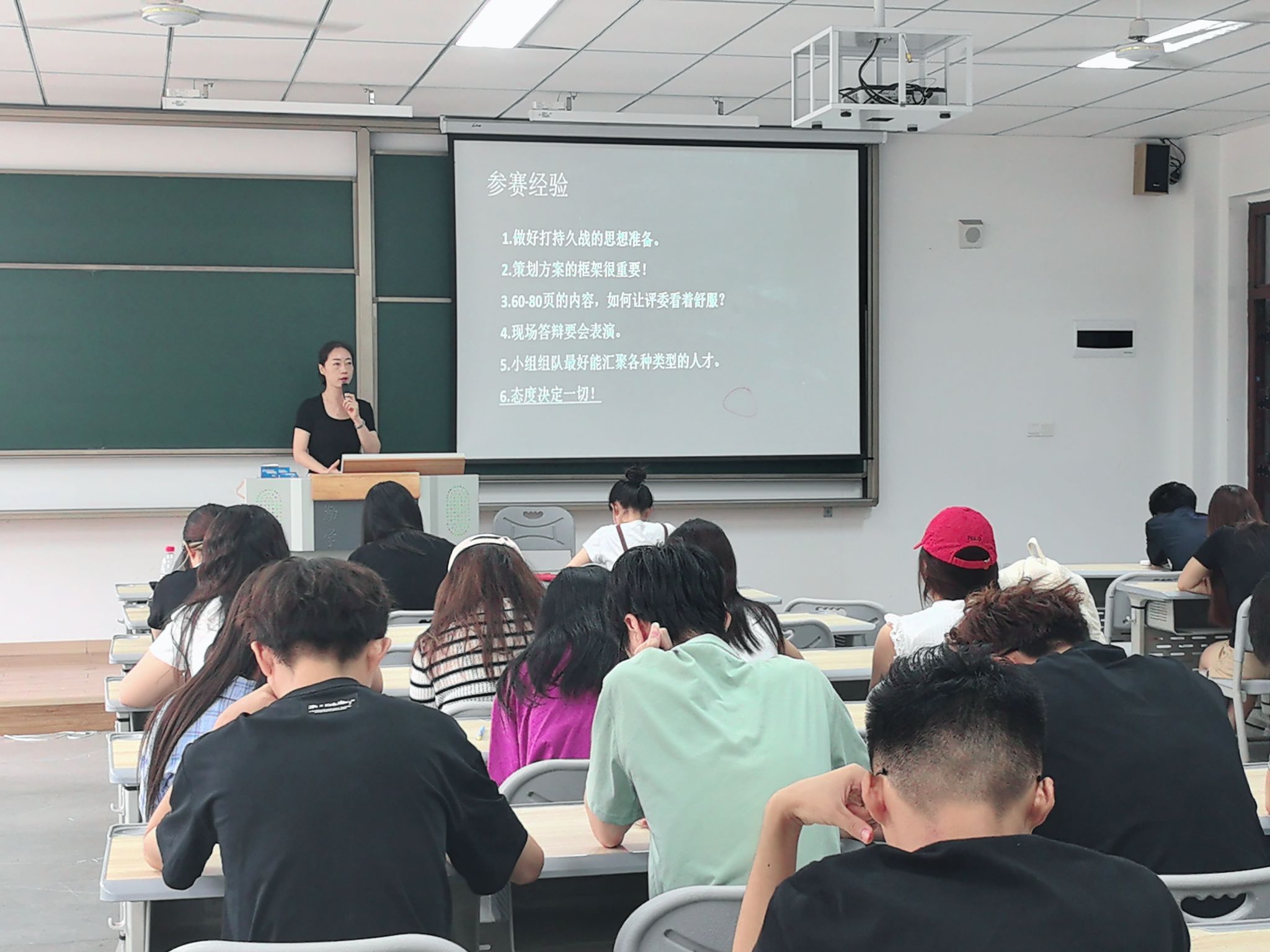 在分享参赛经验时,管老师更是倾囊相授。她指出,策划方案的框架是整个方案的灵魂,必须清晰明了、逻辑严谨。同时,内容的呈现方式也非常重要,要注重排版美观、语言精炼。此外,现场答辩是展示团队实力和风采的关键环节,同学们要学会“表演”,用自信和专业的态度征服评委。