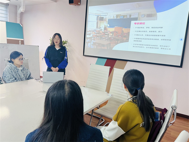 4月19日15:00-16:00,淬炼·国际商学院在三达书院会议室举行了一次别开生面的考研分享会,此次分享会邀请了2024届毕业生考研上岸的审计2001班的武兆滢和审计2003班的王思瑶同学,她们分别就自己的考研经历进行了深入的分享和交流。