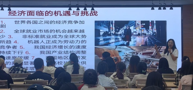 活动开始时董老师就此“就业与创业培训”的主题,提问了一些同学们对未来规划的问题,由此引出本次专题活动的主题。面对三年后的分岔路口,同学们的回答各不相同,但更多的是迷茫与无措,这基于如今的就业形式。董老师以丰富的经验和独到的见解,为同学们剖析了当前就业市场的形势,强调了职业规划的重要性。她指出,在如今竞争激烈的就业环境中,需视挑战如机遇,明确的职业规划和不断的自我提升是脱颖而出的关键,以便在历史的波涛汹涌中扬帆起航。
