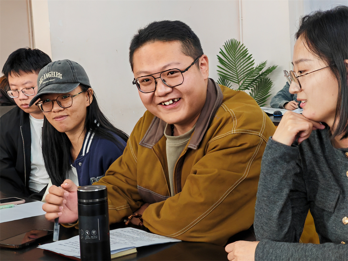 随后发言的李昊冉首先介绍了自己当前在政府企业工作的现状以及在临汾审计局工作一年后裸辞考去太原,为爱追梦。昊冉亲切地与在校学生互动,询问在校现状,并对其误区给出了明确规划的建议。明确求职领域、积极与他人沟通交流,成为一个E人、抓紧考研考证,丰富自我能力——他强调学历的重要性,却也说道“手艺才是铁饭碗,卷学历卷不动就卷技能。”实习、简历、加分项、网站推荐等校友给足了建议。他希望在校学生明确完满教育的意义,做“六边形战士”,呼吁其抓紧在校时间,抓住在校资源,不焦虑,不放弃,走向更美好的明天。