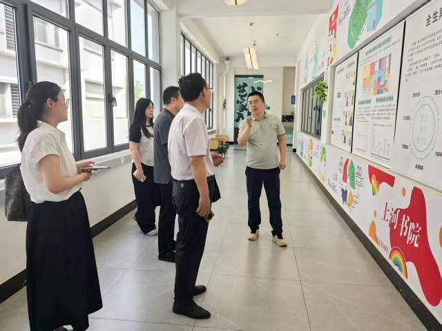 15:00,在淬炼·国际商学院人力资源管理教研室朱晶晶、郭亚琴陪同下,慧源集团团队首站探访上河书院。执行院长杜新明详细阐释了十二大书院协同育人体系的特色,重点介绍全生异科导师制如何通过跨学科导学打破专业壁垒。当走进毣谷书院时,特色剧本杀学院以及共享厨房、大咖阅读胶囊等特色空间引发企业代表浓厚兴趣。