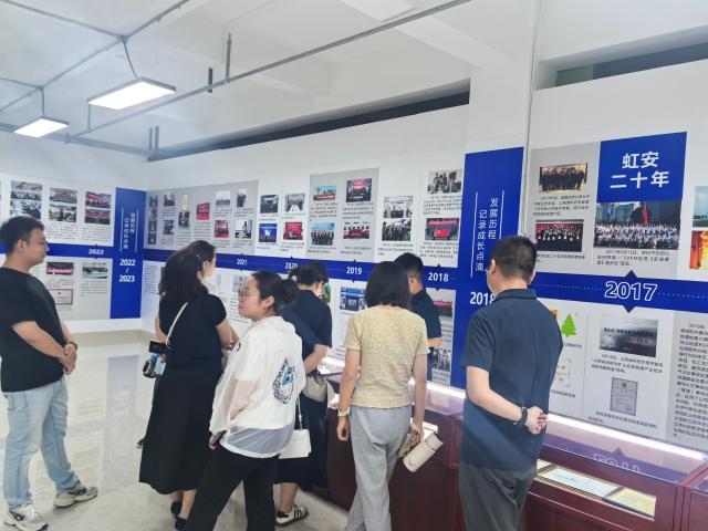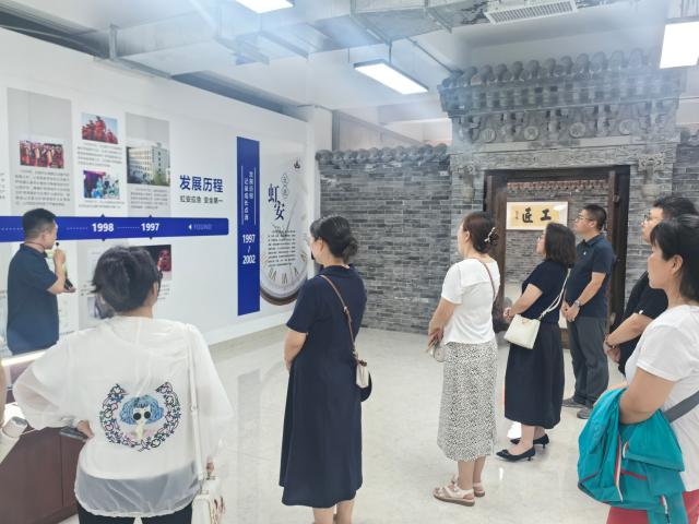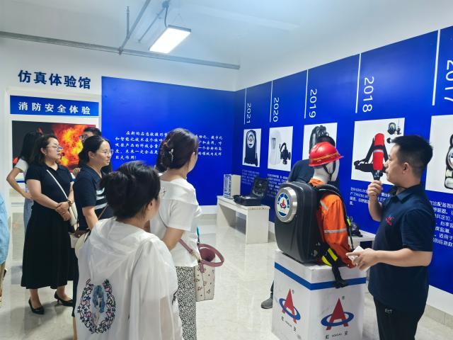 走进虹安,公司的专业讲解人员为在场的老师们讲解虹安自1997年成立以来,秉持“虹安应急,安全第一”的经营理念一步步发展壮大,在安全设备与救援设备的生产领域获得多项荣誉,并发展建立公司自己的职工书屋、党支部等多个文化基地。