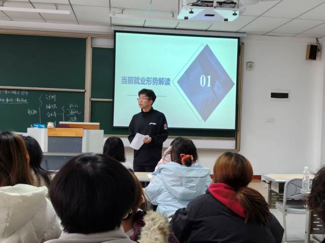 吕慧老师以“政策引路、服务暖心、规划赋能”为主旨,从宏观经济布局、产业结构调整、区域人才需求维度,剖析当前就业市场“稳中有进、结构优化”的总体态势。针对高校毕业生的基层服务项目、中小企业吸纳就业补贴等政策红利,引导学生树立“面向基层、多元发展”的就业观。