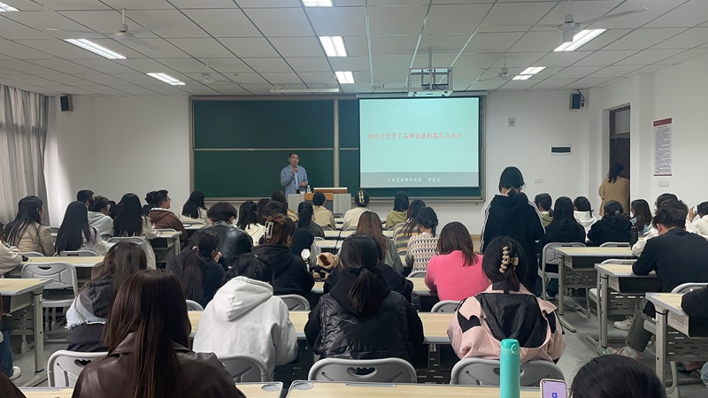 在田德生老师的生动的讲解中,他还不忘与同学们互动,同学们提出有关品牌的相关概念和自己的一些独特见解想法,老师现场解答疑惑,这场生动有趣的讲座不仅体现出他平易近人的性格,也为我们印象中枯燥的“品牌”概念赋予了活力。我们相信伟大的时代诞生伟大的品牌,让我们共同进品牌建设的学习。