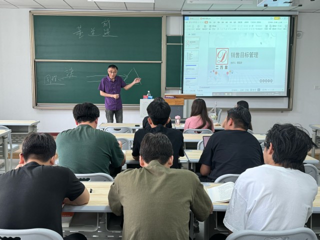 2024年6月7日10:00,营销2101班《销售管理》课堂上迎来了一位特别的嘉宾——重庆移通学院冲突营销学院项目主管董道进老师,董道进老师曾在TCL、联想等企业担任高管20余年,董老师凭借其丰富的行业经验和深厚的管理功底,为同学们带来了一场别开生面的授课,深入浅出地阐述了销售目标的核心要点和实践经验。