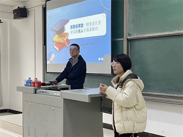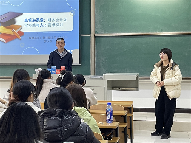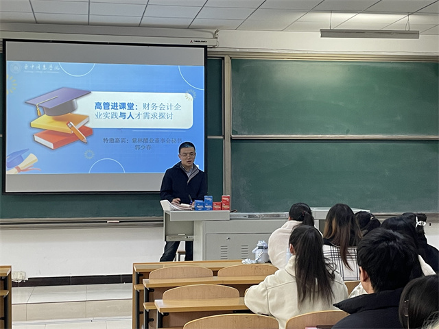 讲座期间,郭总还与在场的同学们进行了沟通交流。针对同学们提出的关于职业规划、就业市场等方面的问题,郭总都给予了细致的解答和建议。他鼓励同学们积极考取注册会计师等有含金量的证书,同时也要保持积极乐观的心态,勇敢面对挑战与困难,不断追求自己的梦想和目标。