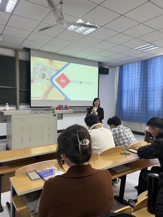 11月18日14:00,太原市益顺康医疗器械有限公司财务经理皮娜在5号教学楼507教室为行管(专升本)2401班的同学们举办了一场关于“浅谈业财融合之思维”的专题讲座。此次讲座不仅为同学们提供了宝贵的实践经验和行业见解,更激发了他们对于未来职业发展的思考与探索。