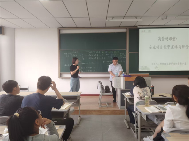 为帮助学生更好地理解财务管理理论在实际场景中的应用,5月27日10:55-11:40在7教501教室,马俊丽老师特邀紫林醋业董事会秘书郭少春,以“企业项目投资逻辑与评价”为主题授课,为财务2402(专升本)班学生带来一场兼具专业性与实践性的行业前沿分享。