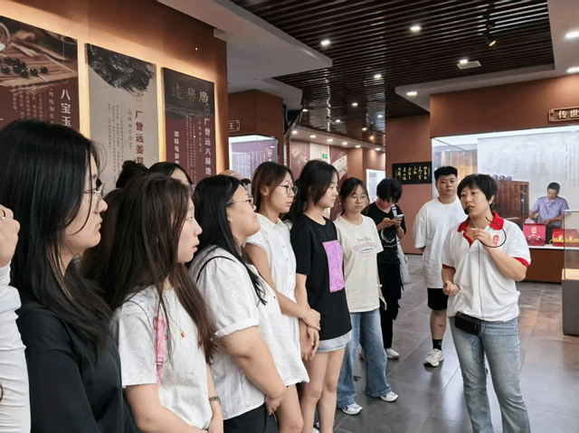 在现代化生产车间,讲解员详细介绍了自动化生产线与人工协作的运作模式。车间内,工人分工明确,绩效考核制度透明,体现了科学化管理理念。学生翟言若注意到:“车间将传统工艺与标准化流程结合,既保障了效率,又保留了非遗特色。这对未来我们设计岗位说明书和绩效方案很有启发。”郭亚琴老师补充道:“传统企业转型中,人力资源管理者需要平衡技术革新与员工适应性,这是值得研究的课题。”