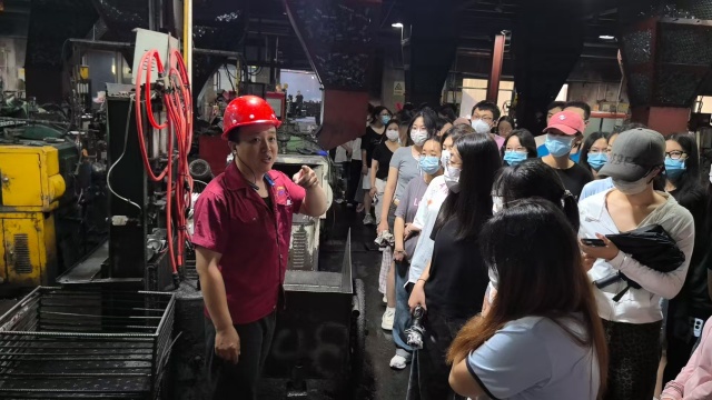 认知实习的核心与高潮在于次日的企业实地参访。全体同学深入山西龙成玛钢有限公司的生产现场,将课堂所学置于真实的产业环境中进行检验与思考。走进铸造车间,同学们切身感受到传统制造业的厚重力量与精密操作要求;严谨规范的生产线,则无声诉说着对品质与安全的极致追求。从原料流转到成品产出,从技术攻坚到团队协作,企业的全链条运作全景式地展现在眼前。