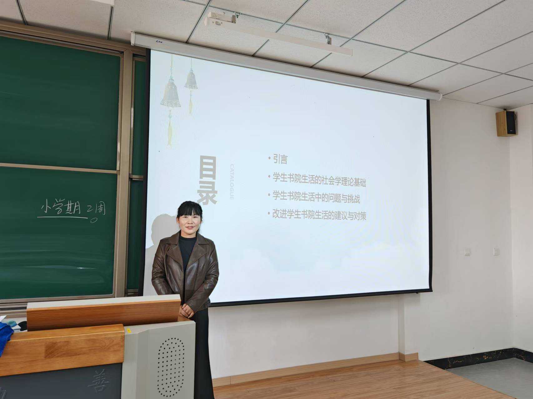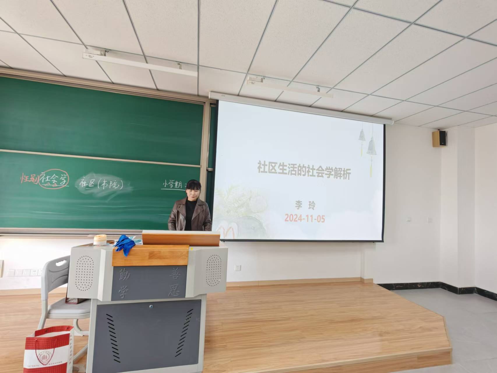 11月5日上午10:00,国际商科教研室李玲老师在7教106为会计2402班同学,举行了一场主题为“社区(学生书院)生活的社会学解释”的学术讲座。