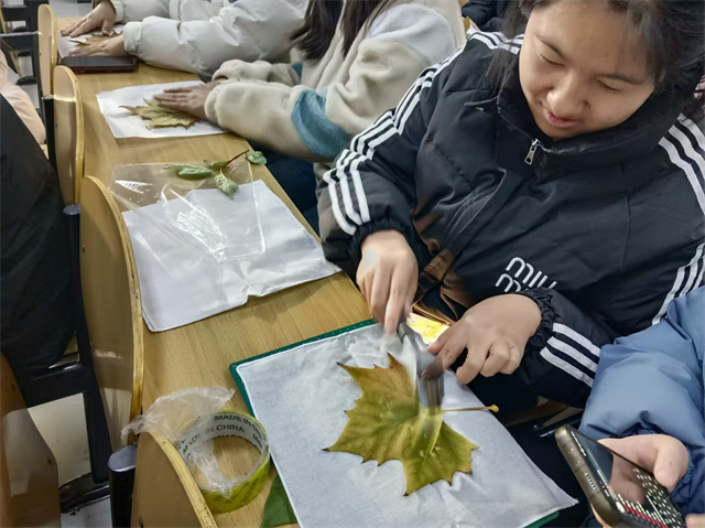 活动现场还让同学们仔细观察植物纹路,让现场的同学们分享了从艺术的角度去观察和欣赏自然界的美。此外,活动还设置了互动环节,鼓励学生们展示自己的作品,并分享创作过程中的心得体会。