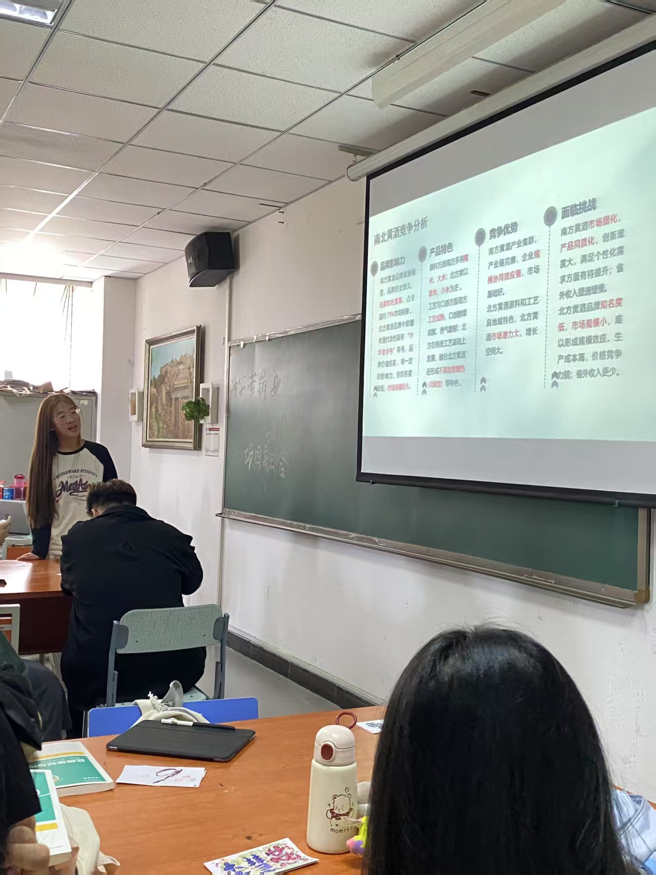随后,由冲突营销精英班项目组的学生们提出营销思路。学生们以“老高家黄酒在‘老’与‘潮’之间寻找第三种答案”为题,揭示项目核心命题。作为山西地区传承三代的家族酒坊,“老高家”黄酒虽拥有非遗酿造技艺与“古法酿造”独特标签,却面临“年轻人不识黄酒味、老客群难拓新场景”的双重困境。