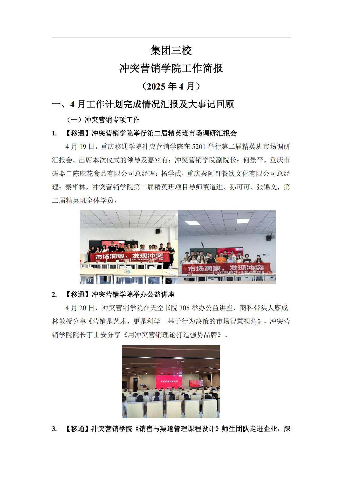 【三校】冲突营销学院4月工作总结和5月工作计划