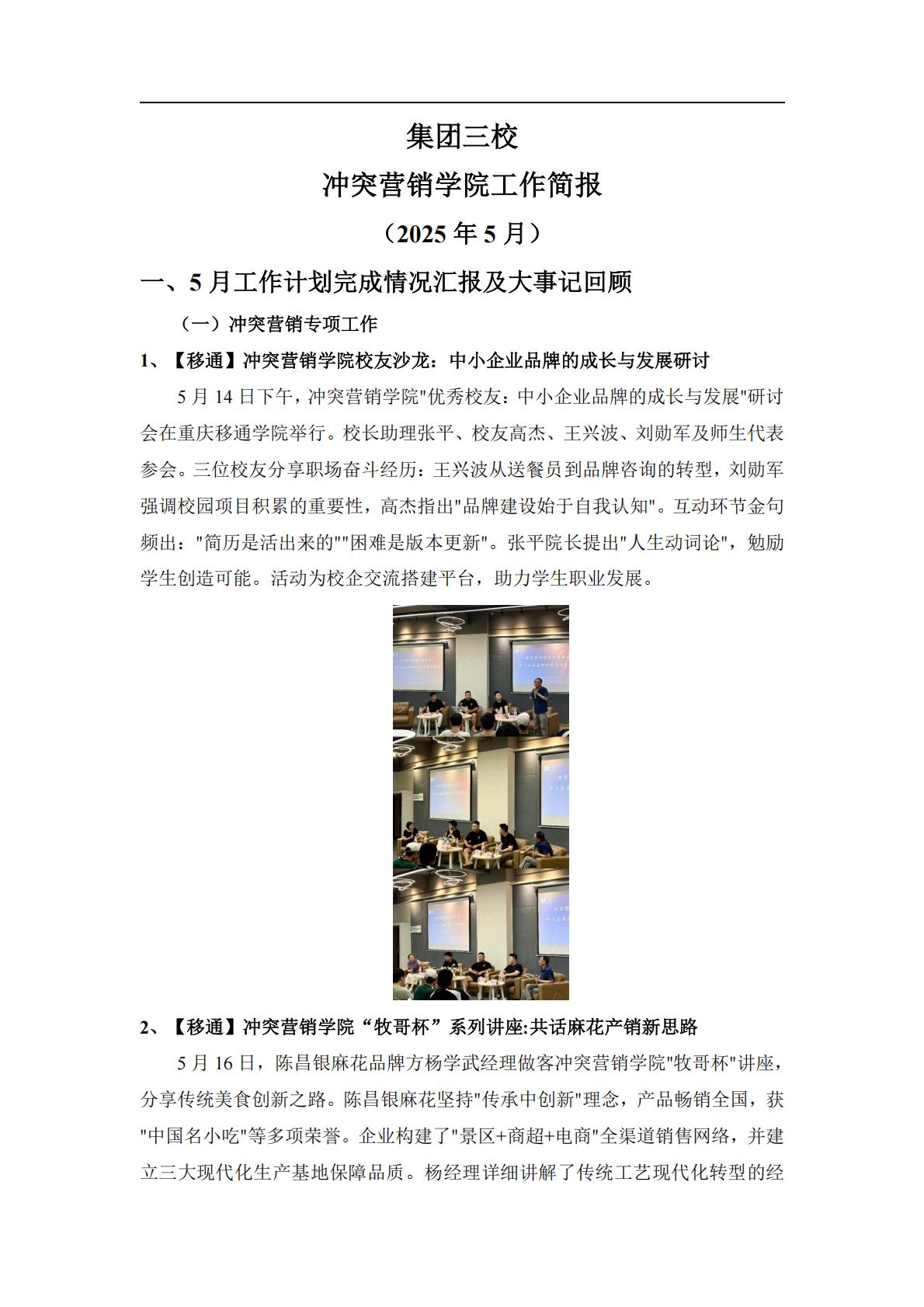 【三校】冲突营销学院5月工作总结和6月工作计划