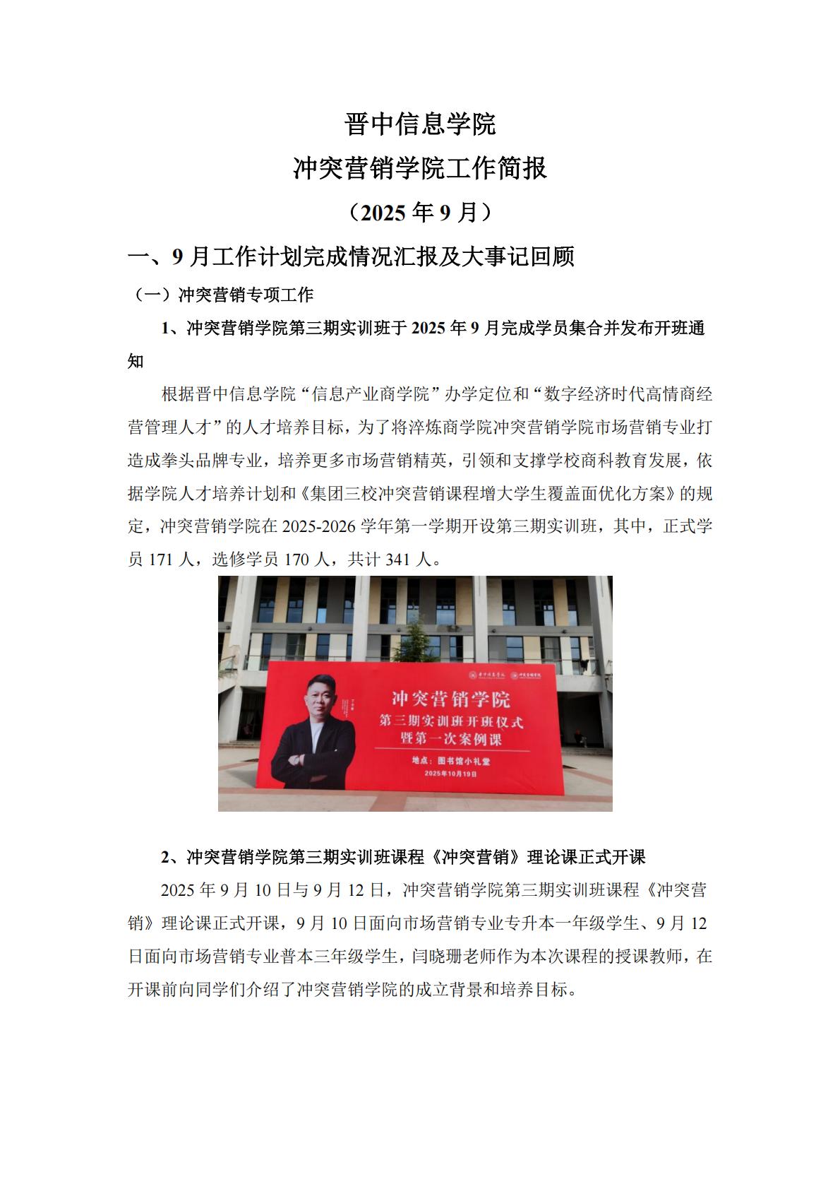 【冲突营销】晋中信息学院冲突营销学院工作简报(2025 年 9 月)