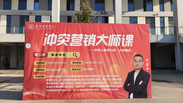 11月22日9:00,冲突营销学院第三期实训班的第三次案例课程在图书馆小礼堂如期举行。冲突营销学院副院长何景平先生以“制造冲突”为核心主题,深入剖析品牌营销实战逻辑,为在场的学员呈现了一场既具理论深度又富实践价值的知识盛宴。