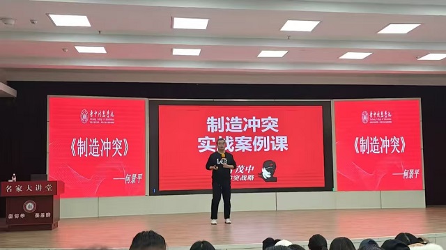 课程一开始,何景平副院长引用叶茂中先生的经典论断“人类营销史的本质是一部冲突史”,精准阐释了“制造冲突”的核心内涵:“在注意力稀缺的时代,主动创造消费者认知冲突,是打破市场僵局的关键所在。”他强调,制造冲突并非刻意制造对立,而是通过打破固有认知,激发消费者的探索欲和需求缺口。
