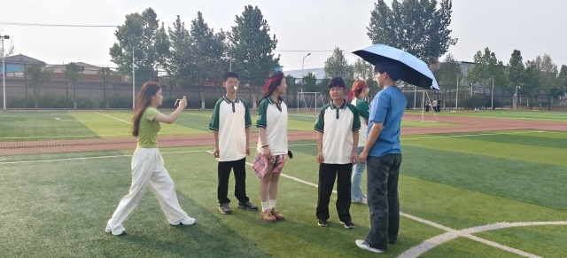 在前期准备阶段,同学们对最近上映的几部电影进行精心对比,最终定下该片,之后将原预告片进行了多轮观摩与分析,确定了模拍的具体执行方案。场地协调成为首要挑战,为匹配原片场景,团队考察了校内多处地点,最终在学校支持下,获准使用书院、教学楼周边及运动场等多处场地进行拍摄。