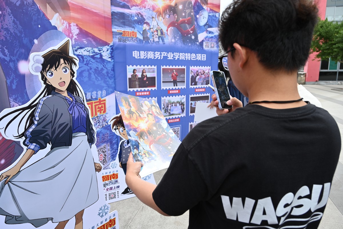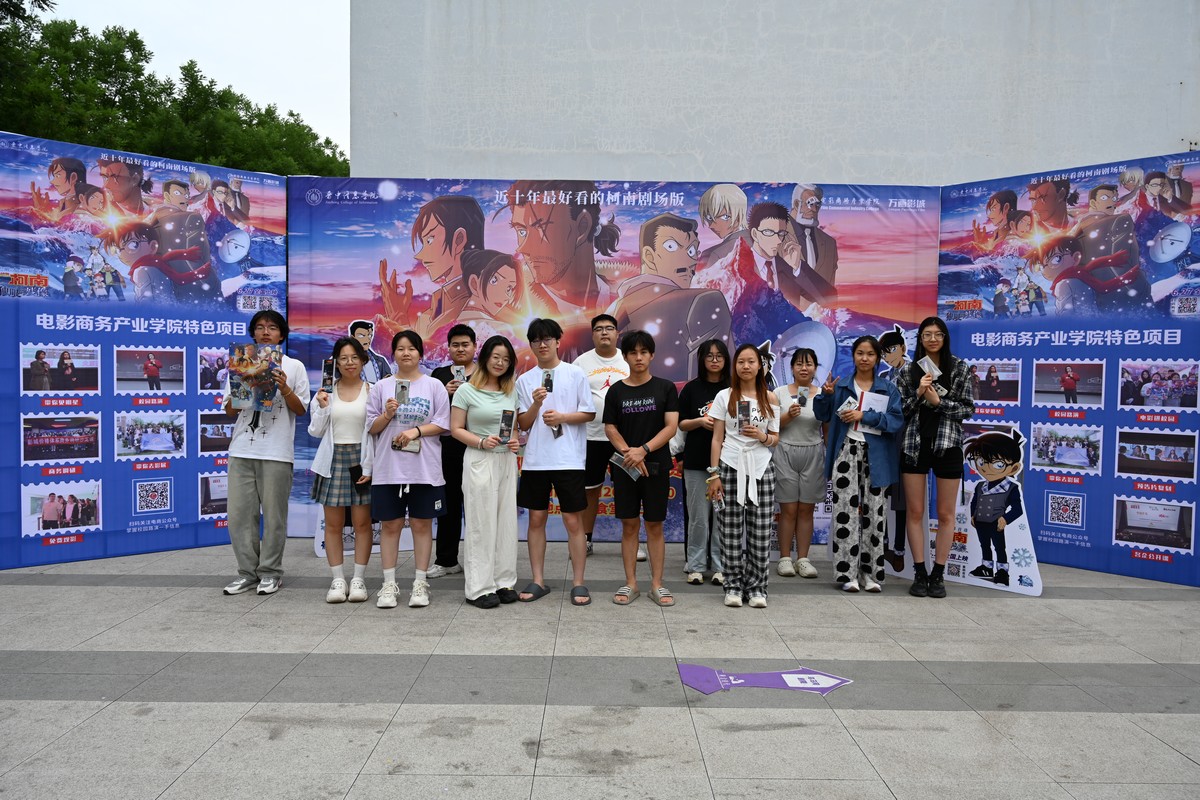随着时间的推移,特典周边逐渐被领完,但同学们的热情却丝毫未减。大家在现场拍照留念,交流着对《名侦探柯南》的喜爱和对此次活动的感受。本次“电影进校园”电影快闪活动,不仅为同学们带来了欢乐与惊喜,也成为了校园生活中一段难忘的美好回忆。未来,电影商务产业学院将继续举办更多丰富多彩的活动,为同学们带来更多精彩的文化体验,让我们共同期待下一次的相遇!