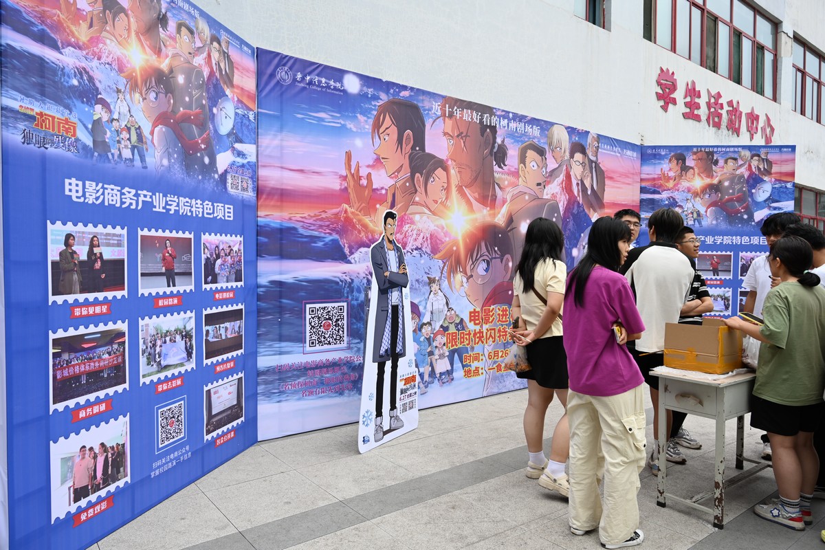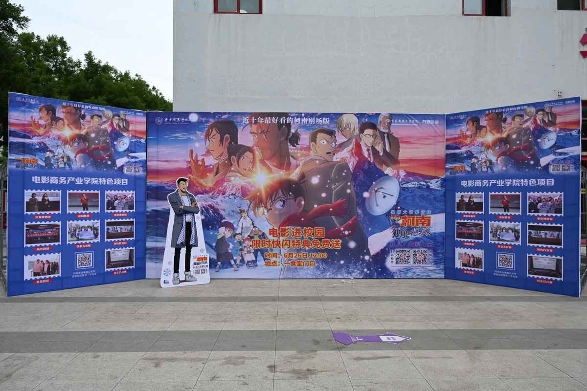 6月26日中午12:00,电影商务产业学院精心策划的“电影进校园”主题电影快闪活动在校园一食堂门口火热开启。本次活动以备受期待的《名侦探柯南:独眼的残像》为核心,不仅为同学们带来了一场沉浸式的电影文化体验,还准备了丰富的特典周边免费赠送活动,吸引了众多同学踊跃参与。