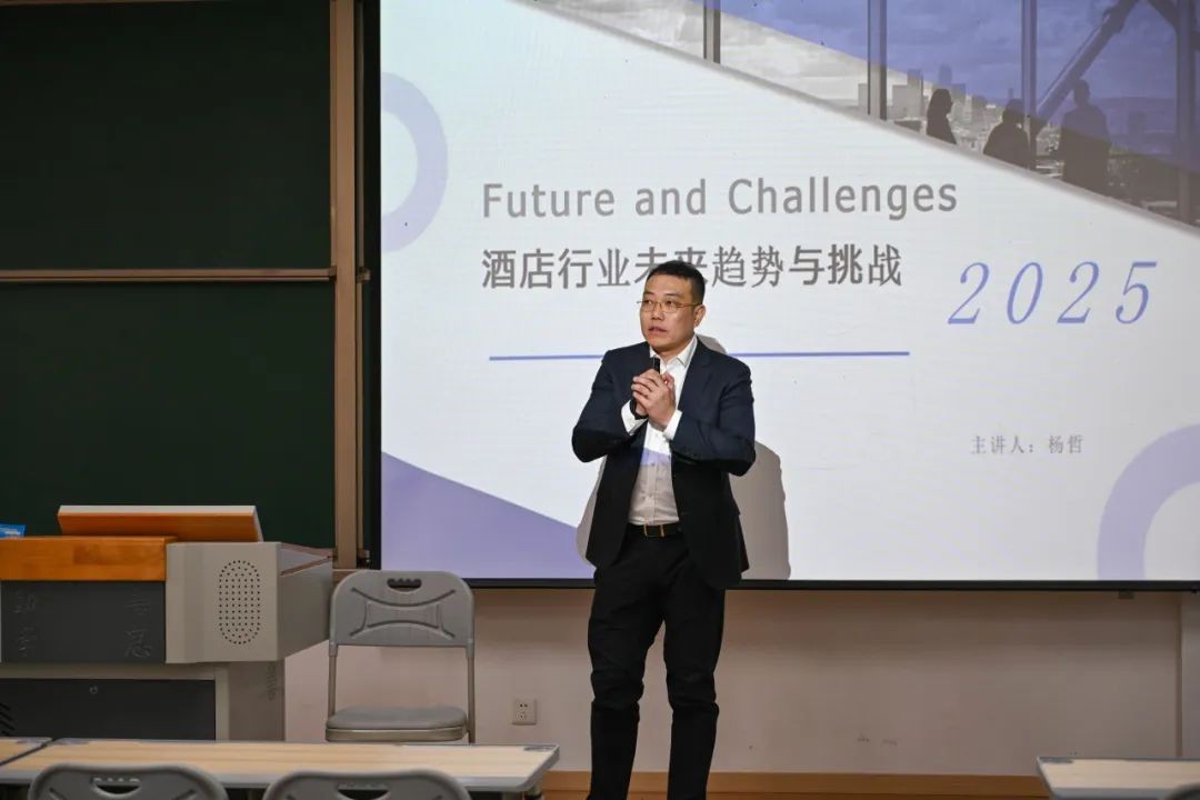 杨哲先生毫无保留地分享了自己的职业成长历程,那些关键的职业节点、影响深远的决策以及在摸爬滚打中积累的宝贵经验,让同学们对酒店行业的职业发展路径有了更直观、清晰的认识。