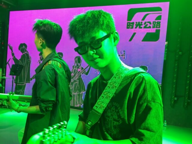 没有老师指导,就对着视频慢放拆解乐句;看不懂谱子上的专业符号,就追着学长问半天,然后回来一遍遍地练。手指磨出茧子,和弦按错了又重来,有时候一首歌的前奏要练上几十遍才能连贯。有好几次练到深夜,排练室里只剩我一个人,电吉他的声音在空荡的房间里回荡,我也会偷偷怀疑“是不是真的不行”,可一想到“能组乐队”的目标,又咬着牙拿起吉他继续练。