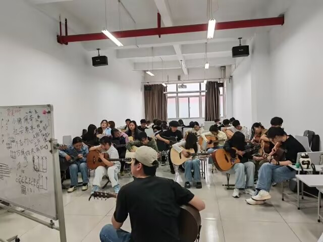 那段时间总觉得找不到方向,看着身边人要么在学生会站稳脚跟,要么在专业学习中崭露头角,我却连“怎么把吉他弹得更好”都没头绪。直到某天,我因为合唱排练路过一餐三楼中心三楼时,突然听见里面传来吉他的旋律——不是开学典礼上那种仓促的表演,而是带着劲儿的、反复打磨的练习声,混着隐约的架子鼓节奏,一下勾住了我的脚步。我贴着墙站了好一会儿,手指不自觉地跟着节奏在裤腿上敲,心里那点快要熄灭的“想玩音乐”的火苗,突然又亮了起来。我攥紧怀里的木吉他背带,第一次有了“想进去看看”的冲动——那间传出音乐的屋子,后来我才知道,是木风吉他社的排练室。