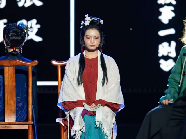 他引导我回想过往那些咬牙坚持的时刻,打捞与角色共通的共鸣。有次排练到深夜,我卡在“公堂对峙”的片段里,越演越僵硬,急得蹲在地上掉眼泪。同组演赵怀罗的同学没急着走,反而蹲下来模仿起柳悠然的语气:“你看,她不是‘硬刚’,是‘把害怕攥在手心,再笑着抬眼看人’。”说着还捏起我的手腕,让我感受“攥紧拳头却语气平静”的张力。那天我们在排练厅对着镜子反复练“眼神的温度”,直到走廊的灯都灭了一半,我才终于摸到了柳悠然“外柔内刚”的分寸——说话轻,但每个字都像落在石头上。