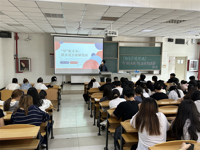 9月12日15:00,淬炼商学院·国际商学院辅导员王婷于2教104教室以“就业谜题”为主题举办了一场职业导航活动。此次活动内容扎实、视角多元、策略实用,旨在帮助同学们深入理解当前就业形势,并科学规划个人发展路径。