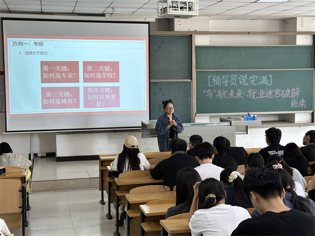 王婷老师以“你们的‘未来’,我陪你们一起‘导航’”作结,表达了对同学们的深切关怀与支持。整场讲座内容详实、氛围热烈,同学们纷纷表示受益匪浅,对未来的规划更加清晰明确。