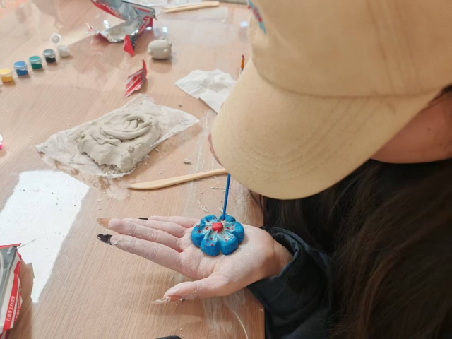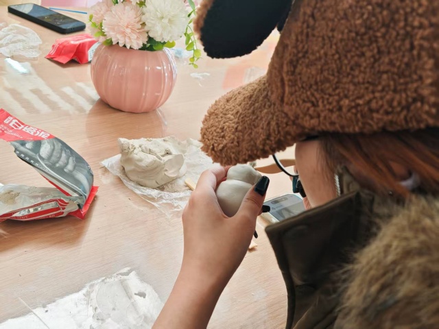 活动室里充满了欢声笑语,有人因为粘土粘在手上哈哈大笑,有人为自己捏歪的小恐龙发愁,还有人举着刚做好的卡通钥匙扣向大家炫耀,每一件作品的背后,都是耐心与精心的凝聚。在这里,没有标准答案,只有个性的表达与专注的状态,为紧张的学业生活注入了一份难得的治愈。