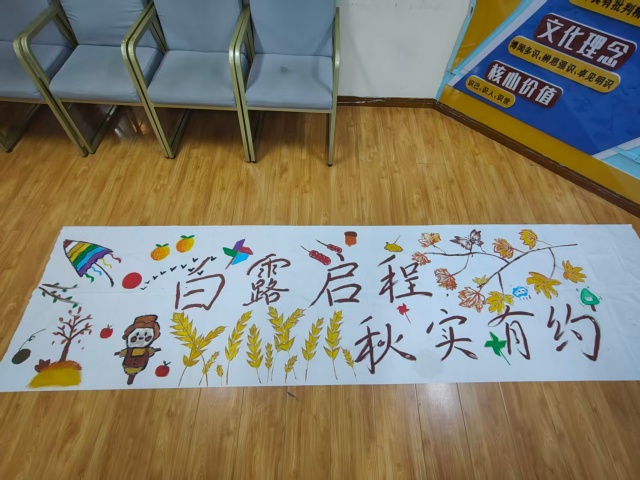 经过近两小时的协力创作,一幅凝聚了全班同学智慧与热情的巨大秋景图终于完成。画卷上,既有北方秋日的壮阔绚烂,也不乏稻田丰收的静美诗意,更点缀着专属于这个班级的青春符号与美好愿景。整幅作品色彩饱满,创意无限,生动展现了同学们的蓬勃朝气与强大凝聚力。