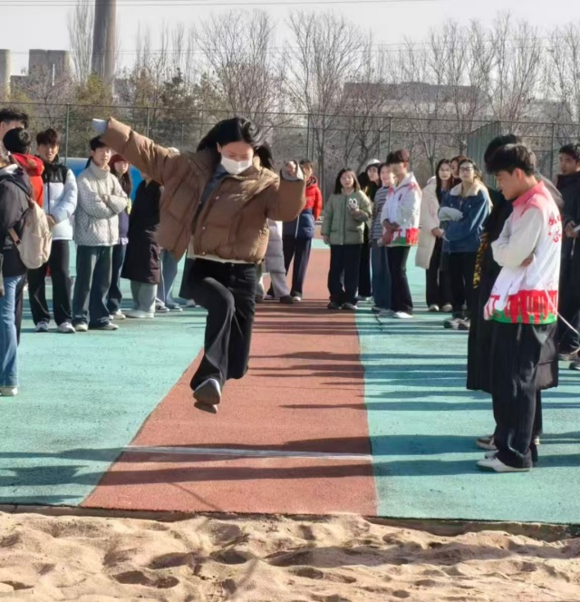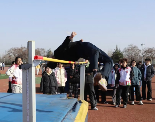 跳高赛道上,选手们踩着精准步点助跑,积蓄的力量在起跳迸发——屈膝、蹬地、腾空,身体舒展成流畅弧线,或背越横杆,或挺身跨越,一次次向新高度发起冲击;跳远赛场上,运动员紧盯踏跳点,加速、蹬地、纵身一跃,在空中划出优美轨迹,沙坑中深陷的印记,是拼搏的勋章。其中,武宇同学凭借稳健节奏与出色爆发力,在三级跳赛场奋勇争先,最终摘得男子三级跳桂冠,用实力诠释了青春的热血与担当。
