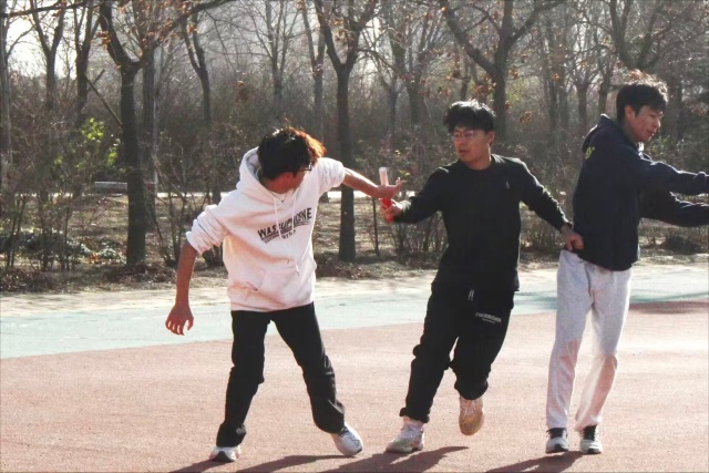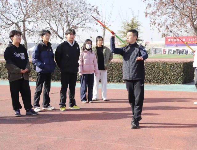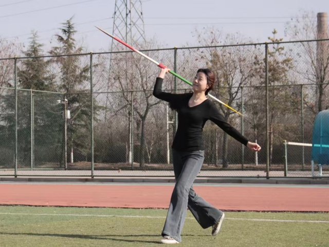 标枪选手助跑时,枪尖在阳光下闪着冷冽的金属光泽。投掷瞬间,力量从脚跟经腰腹传递至指尖,标枪呼啸着刺破空气,插进草地。其中,薛润泽、郝晓强两位同学凭借精准发力与稳定发挥,分别斩获男子标枪第一名、第二名。