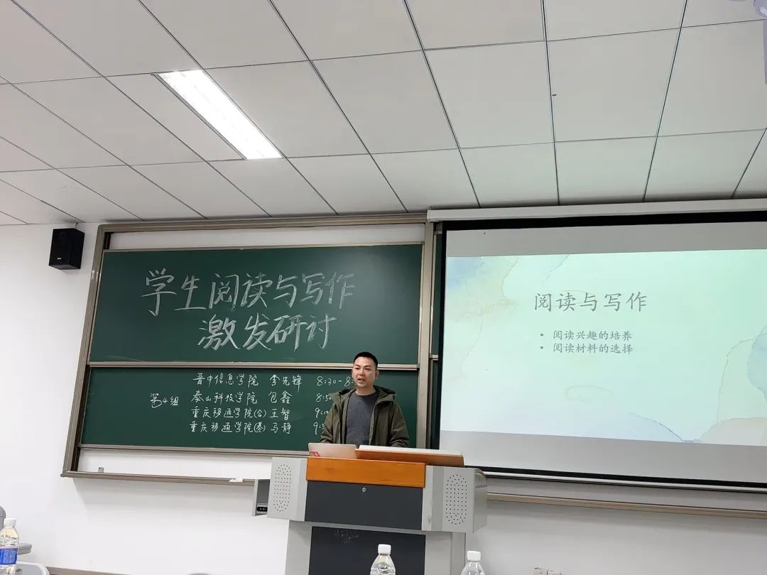 在第四组“学生阅读与写作激发研讨”上,李先锋老师从人类兴趣发展的四个阶段——触发的情境兴趣、维持的情境兴趣、初始的个体兴趣和稳定的个体兴趣阐述了培养学生阅读兴趣的各种方式方法,通过信院实施的各种活动,如乌马河读书会、师生共读、主题沙龙、右岸观影会、期刊品读以及每周一次的文学讲座等,传递了信院激发学生阅读的经验。在阅读材料的选择上,李老师向同学们推荐了西方文学、中国古典文学、现当代文学以及文学理论等经典作品,切实可行地提高了学生对文学的认知,和对思维、审美的训练。