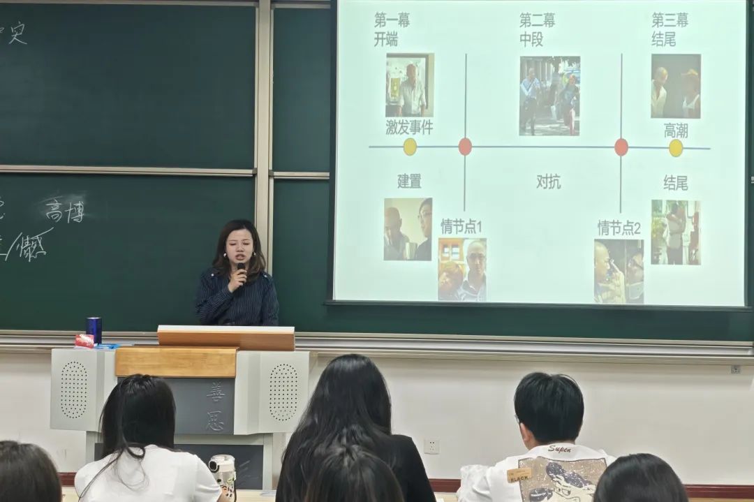 2025年4月10日,白海飞老师邀请电影评论中心崔馨月老师在创意写作课堂上携手开展了一堂双师授课。课程以“矛盾与冲突”为主题,通过真实事件剖析、影视案例解析与文学经典探讨,引导学生挖掘故事创作的核心动力。