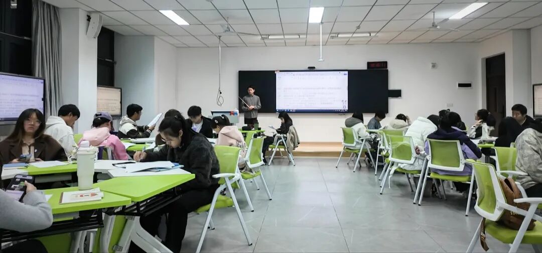 一位同学创作了男市民夫妇十天前收养小猫的故事,展现了这对夫妻如何溺爱孩子,甚至纵容他虐待动物,进一步揭示了他们的性格特征;另一位同学从妓女的视角写了一篇内心独白,描述她如何从一个纯洁的少女被迫走上行骗之路,表达了她对自我身份的厌恶与对自由的渴望;还有同学构思了工人与侄子联手行骗的后传故事……在分享环节,黄老师对大家创作给予了细致点评,并提出改进建议:“故事中的转折需要更大的冲突来推动,如果一个人物要发生根本转变,必须有一个非常重大的事件。轻易实现的转变缺乏说服力。”
