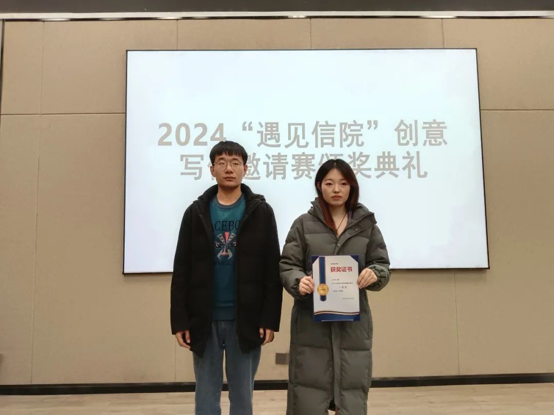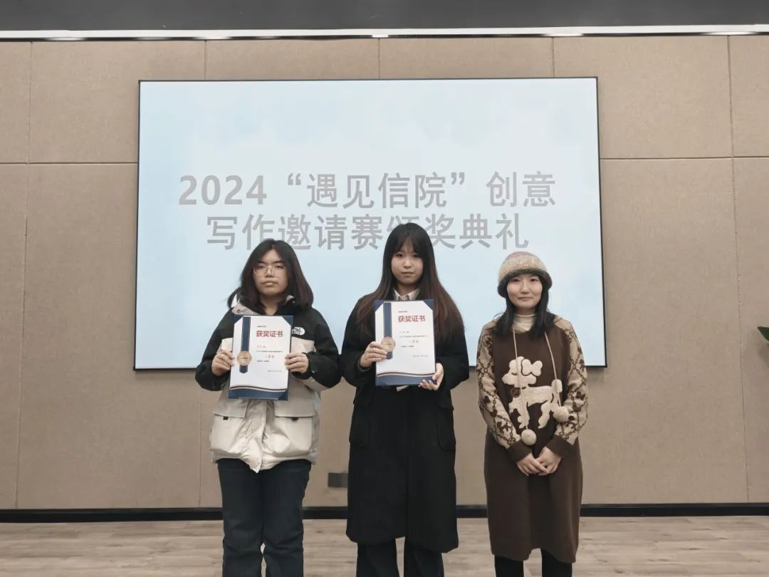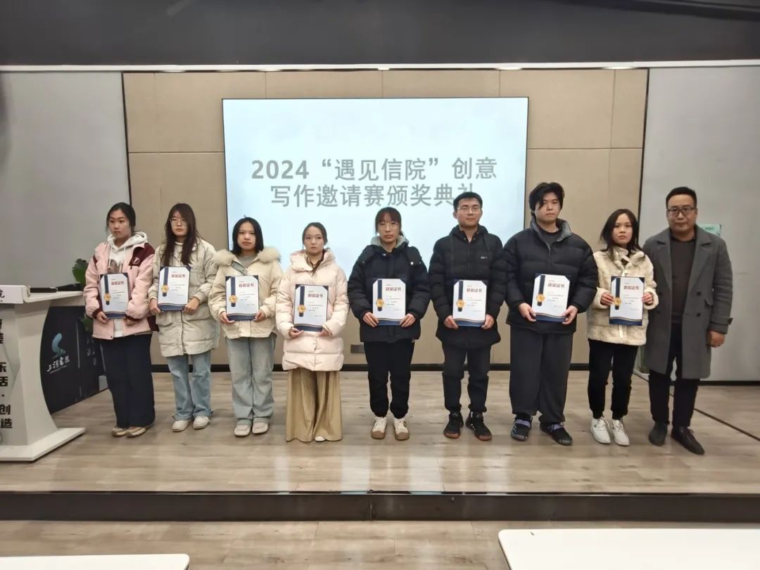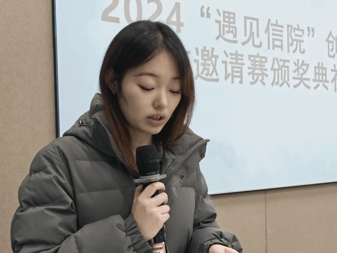 活动伊始,主持人满怀激情地宣布了本次邀请赛的获奖名单。在诗歌和故事两个类别中,分别评选出了一等奖、二等奖、三等奖和优秀奖。郭晓婉的《北上》以其细腻的笔触和动人的故事,在故事类作品中脱颖而出,荣获一等奖;孙慧珍的《乌马河练习曲》则凭借磅礴的气势和深邃的情感,摘得诗歌类一等奖桂冠。当主持人念出获奖名单时,现场掌声雷动,每一位获奖者的脸上都洋溢着自豪与喜悦。这些获奖作品以“遇见信院”为主题,内容涵盖了校园生活、青春成长、自然感悟等多个主题,它们以其深刻的内涵、独特的创意和精湛的写作技巧,赢得了评委们的高度认可。