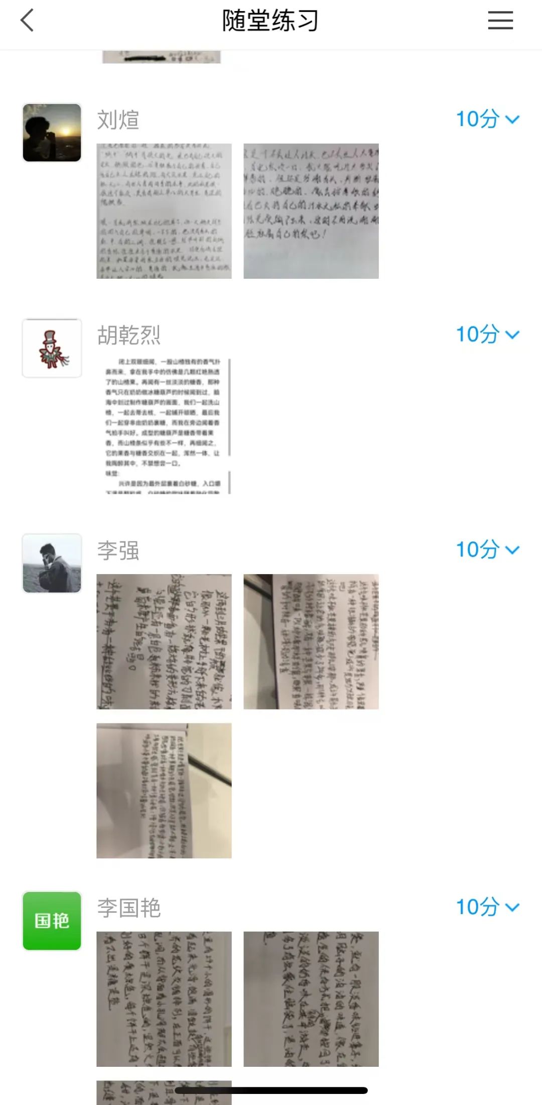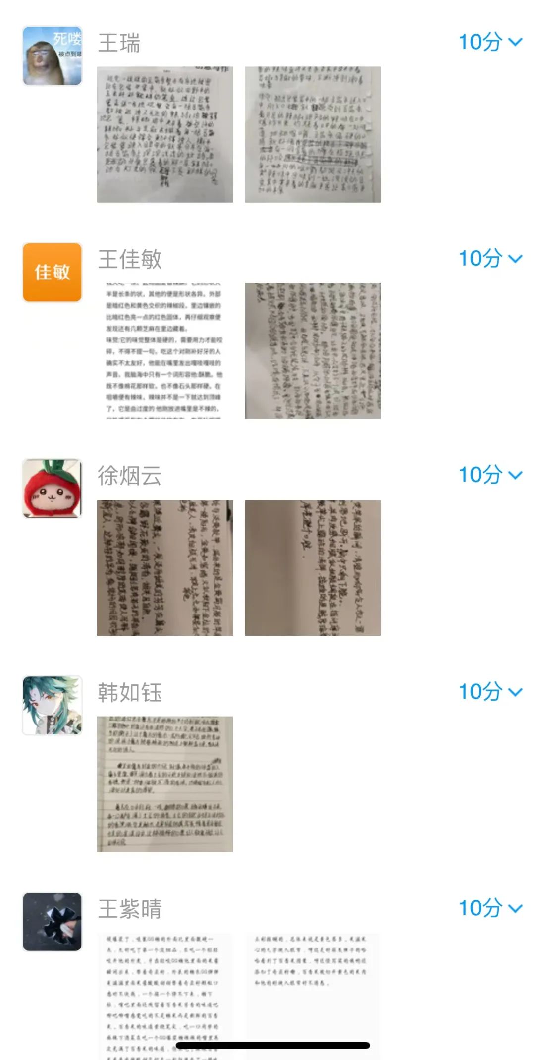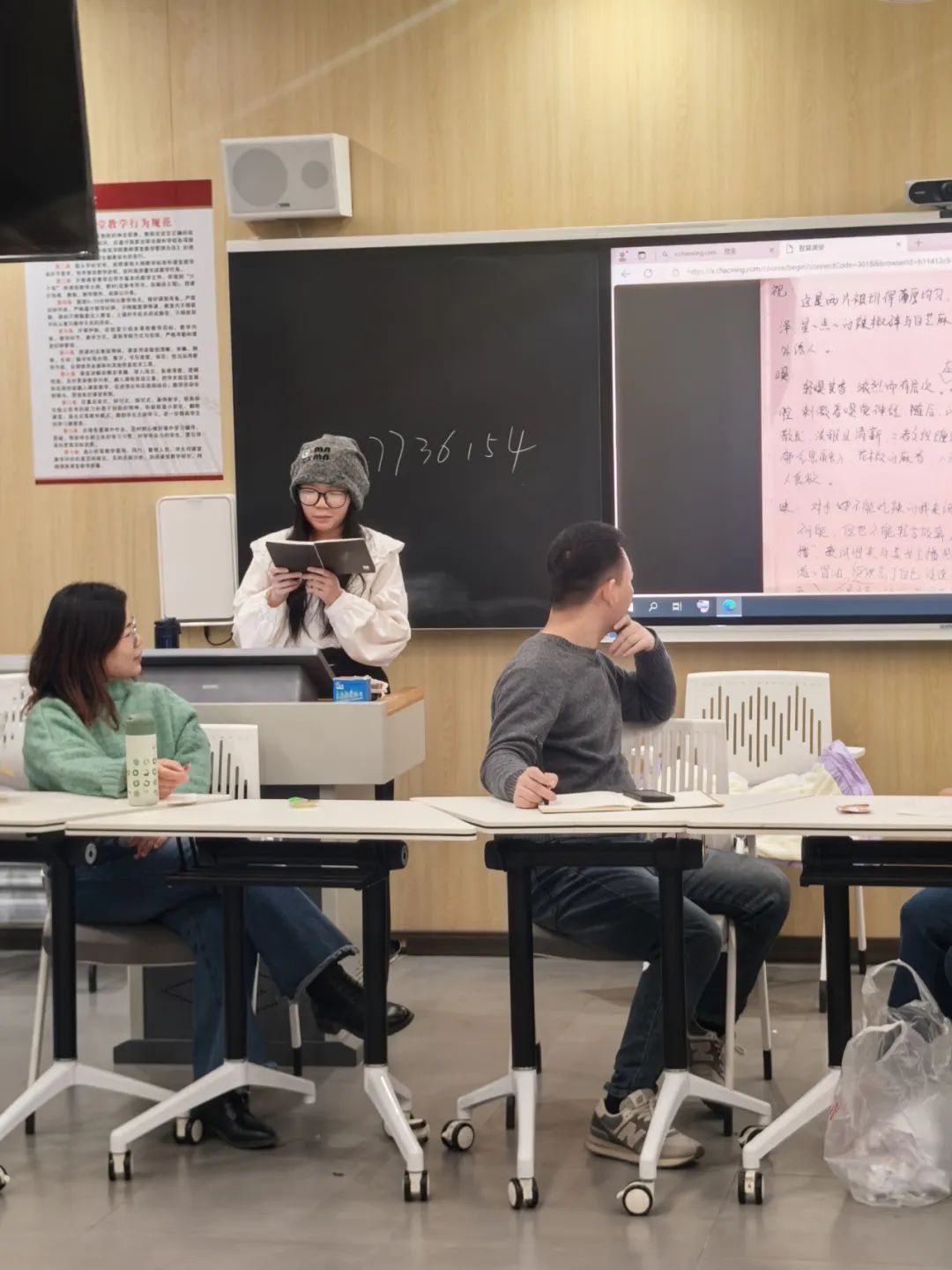 四十分钟过后,学生们在学习通上提交了自己的作品,接下去的环节是,大家按照抽签顺序上台朗读自己的文字。
