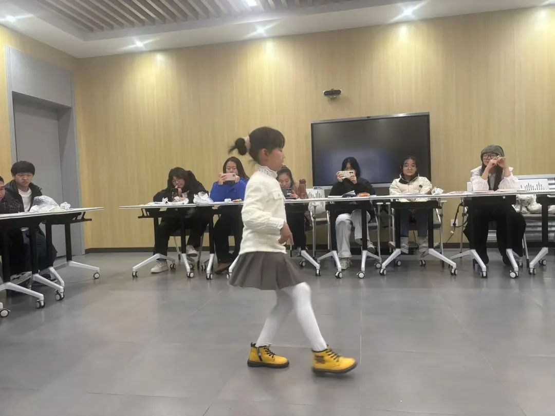 上课开始,程艳萍老师的女儿八岁的程静姝小朋友给我们带来一段很劲爆的开场舞,引得同学们热烈鼓掌。