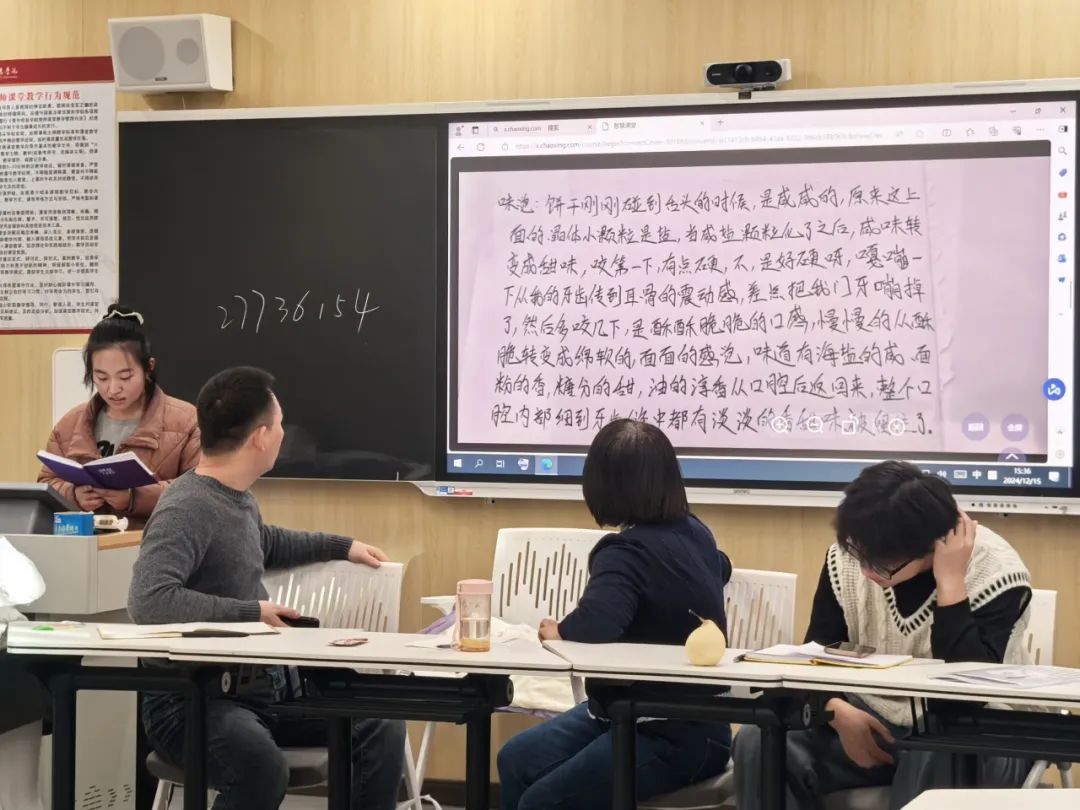 同学们很快便进入状态,开始仔细观察抽取到的食物,先对其进行一百字左右的描写,再进行嗅觉、味觉的写作训练。