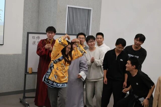 当学生们仍沉浸在角色中时,两位老师已回归本职身份。张振帅老师首先从原著小说《盗官记》讲起,对比电影如何将线性叙事改编为“子弹式”快节奏推进,强化戏剧冲突与象征表达。他指出:姜文用“土匪打县长”的壳,装的是对权力、革命与人性本质的追问。剧本杀学院郝雅舒老师则从剧本杀游戏设计角度提出:《让子弹飞》若改编为标准剧本杀叙事,需将张麻子、黄四郎、汤师爷等角色做成独立剧本线,并设置“是否继续革命”“是否分钱走人”等道德抉择,增强玩家的代入与思辨。