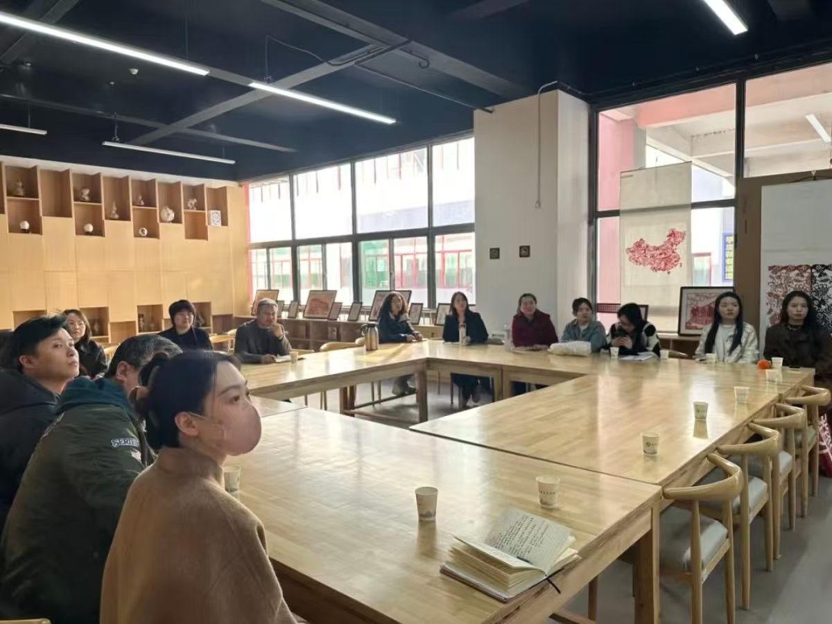 最后,视觉传达设计教研室团队齐聚研学空间,围绕“非遗与数字化融合”主题展开了深入的研讨交流。在研讨过程中,老师们结合自身教学经验与专业背景,就如何将非遗融入视觉传达设计课程体系,例如《装饰与图案》《文创衍生设计》等课程、如何开展非遗主题的实践教学活动以及如何培养学生的非遗传承与创新意识等问题进行了深入讨论。大家一致认为,非遗与视觉传达设计的融合是当前学科发展与文化传承的重要方向。未来,非物质文化遗产研究中心与视觉传达设计教研室将进一步加强融合,为培养具有文化传承与创新能力的视觉传达设计人才奠定坚实基础。