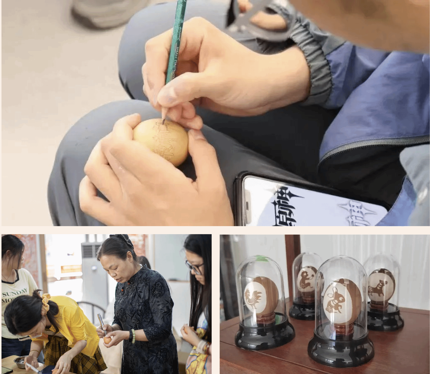 非遗研学活动中,同学们全神贯注地投入雕刻中,感受着在蛋壳方寸之间雕琢的魅力。学生非遗研究员王俊婷表示:“蛋壳雕刻中承载的不仅是精妙绝伦的技法,更是跨越时空的文化传承。每一笔雕刻的纹路皆是技艺精髓的流淌;本次蛋壳雕刻非遗研学活动不仅是技艺的传授,更是传统文化精髓在年轻一代手中的接力与传承。”