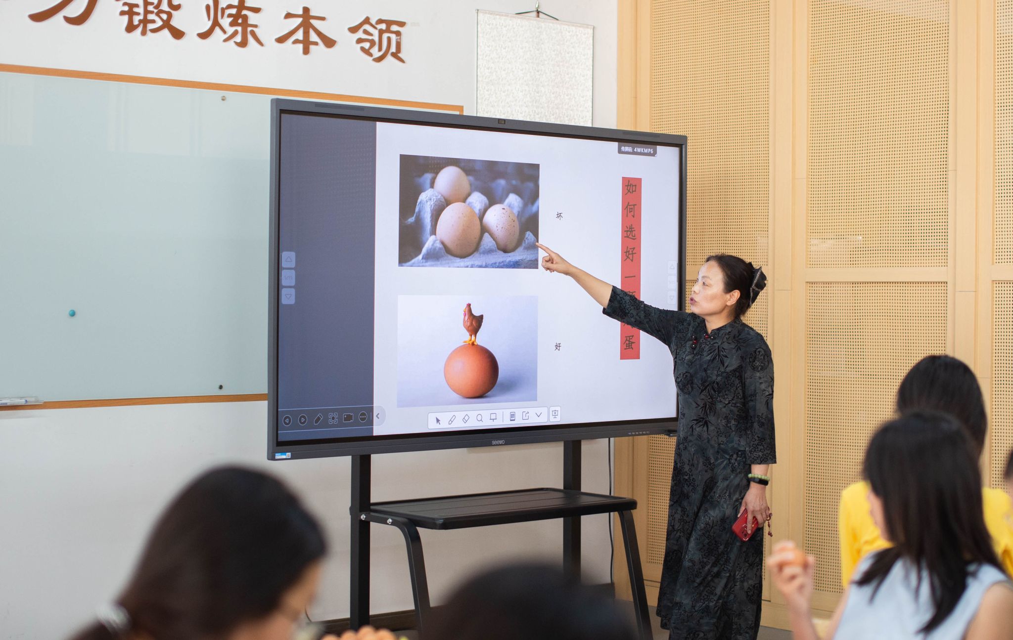 活动伊始,符润娥老师聚焦晋商古建中的花卉瑞兽纹样,为同学们深入讲解蛋壳雕刻的技法要点。符老师以蛋壳为画布,细致阐述浮雕、镂空等技法在蛋壳上的运用,从线条的勾勒到整体的布局,将蛋雕技法的神韵与精髓,让同学们对传统蛋雕非遗技艺有了初步的理论认知。