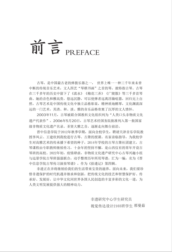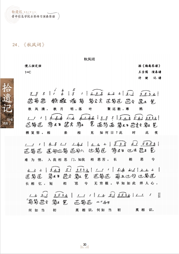 《拾遗记》第四辑《晋中信息学院古琴传习演奏琴谱》