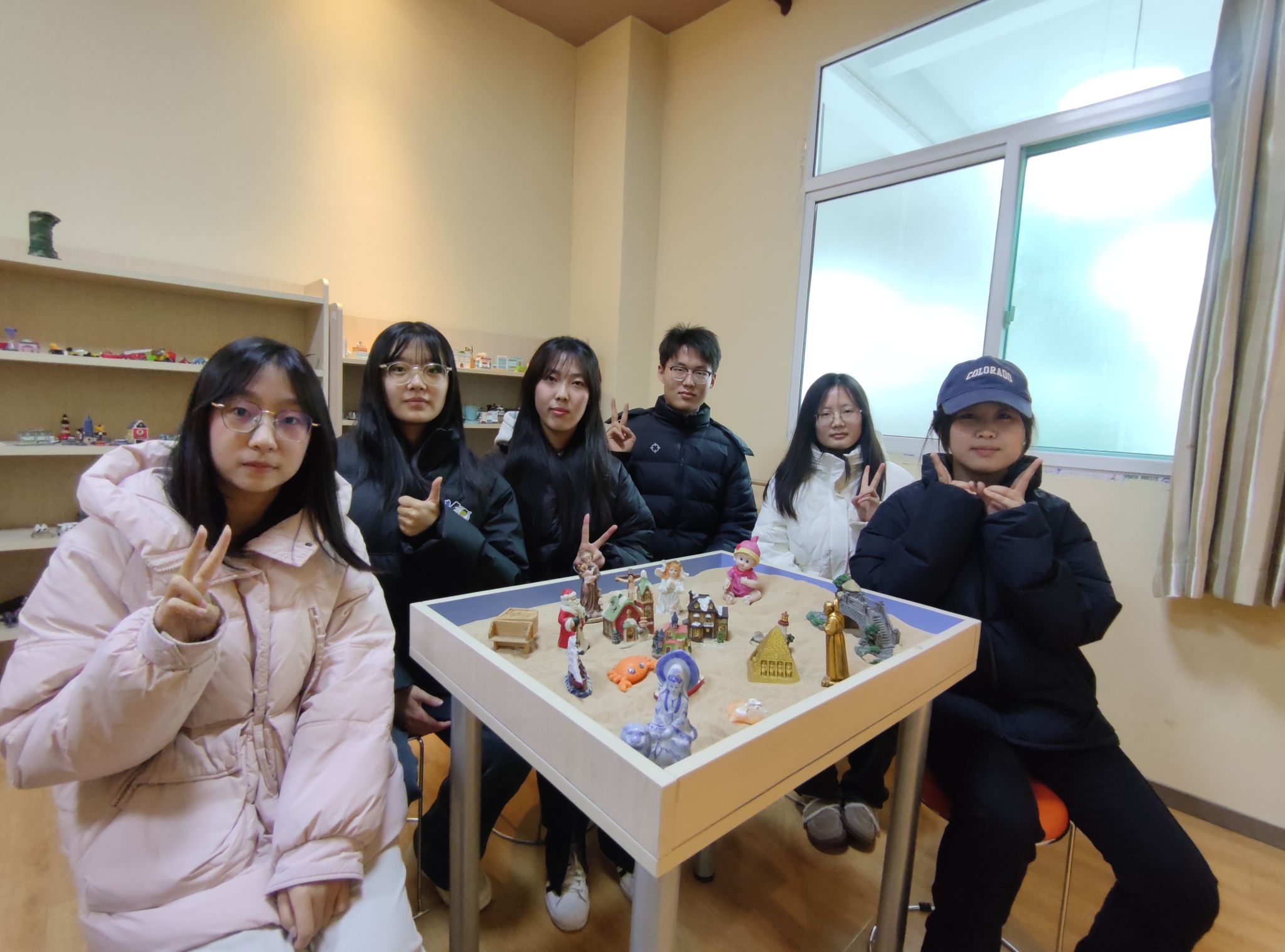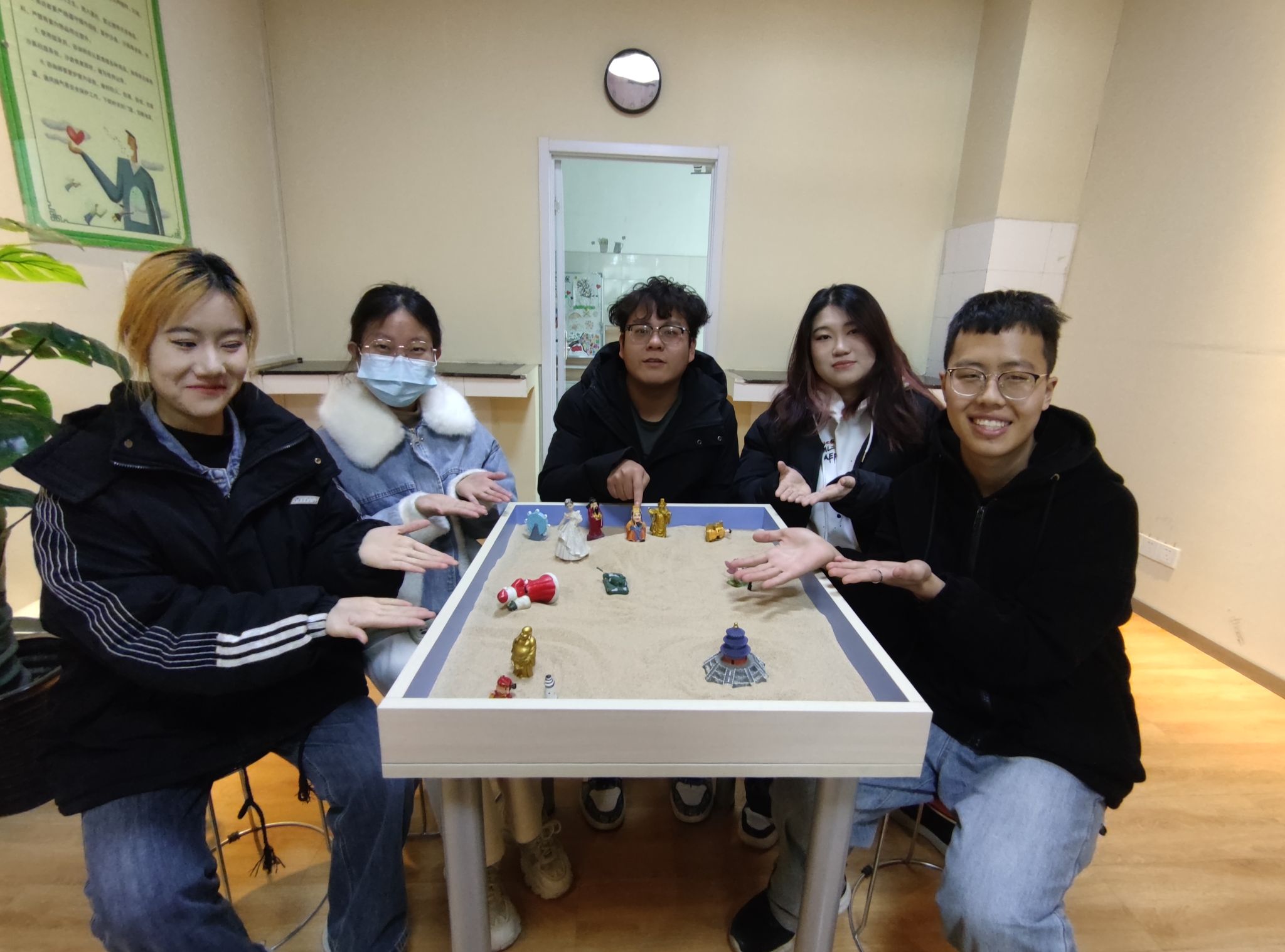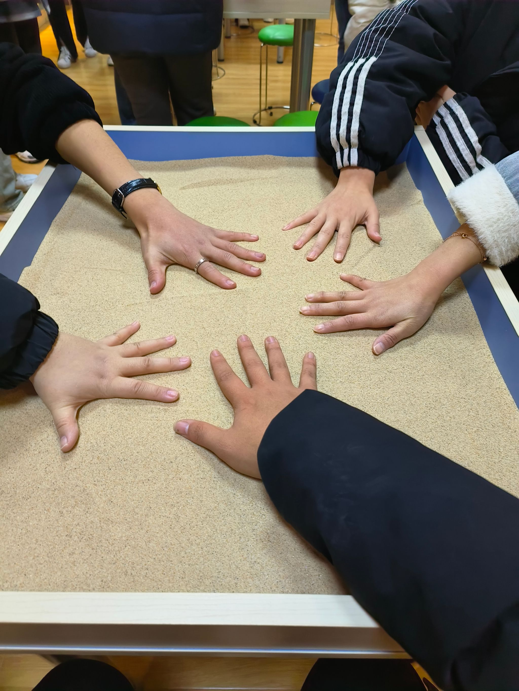 团体活动是促进人际互动的重要渠道,为了帮助学生了解团队合作的重要性,陈艺华老师带领“人格心理学”学生开展了第二课堂活动,在艺术疗愈工坊开展了沙盘游戏体验。